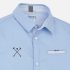 Camicia in tessuto dobby stretch a contrasto con popeline a righe, morbido e flessibile. Bottoni finto madreperla. Fascia in grossgrain nel colletto e nel giro manica. Ricamo e tasca sul petto. Impuntura decorativa sui fianchi. Morbida al tatto.