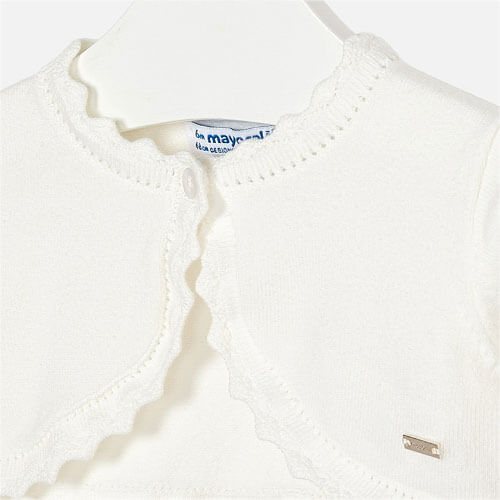 Delizioso capospalla basico e abbinabile a molti articoli della nostra collezione. Realizzato in tricot, morbido al tatto e dal taglio ampio. Il colletto è tondo e la chiusura avviene tramite bottoncino. Sia il colletto, l’apertura, i polsini e l’orlo terminano con ricamo ad ondine.
