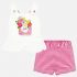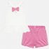 Maglietta con bretelle. Girocollo. Modello dal design intrecciato. Chiusura con bottoni. Design con volant decorativi nella parte bassa. Elementi decorativi: disegno nella parte anteriore, glitter, fioccoPantalone corto modello shorts. Elastico in vita per una migliore vestibilità. Design stampato.