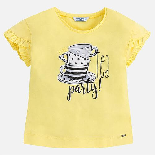 Elegante maglietta manica corta realizzata in jersey. Si tratta di una maglietta dal design semplice con deliziosi dettagli sulle maniche. Con serigrafia con applicazione nella parte anteriore.