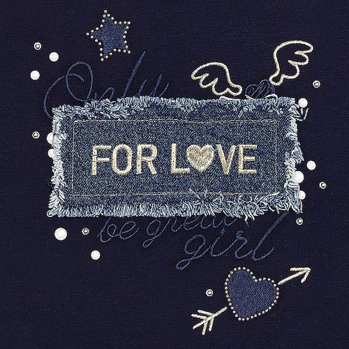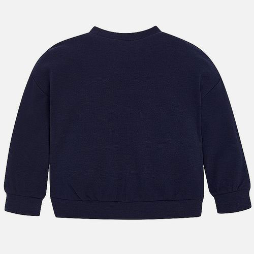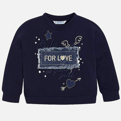 Felpa bambina. Girocollo. Realizzata in morbida felpa. Elementi decorativi: scritta nella parte anteriore, serigrafia, ricami e applicazioni (perle e borchie).