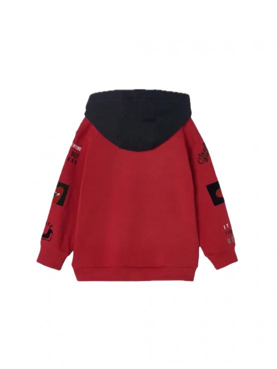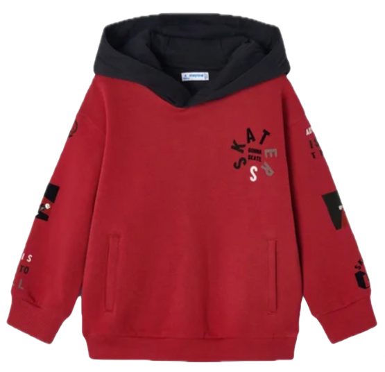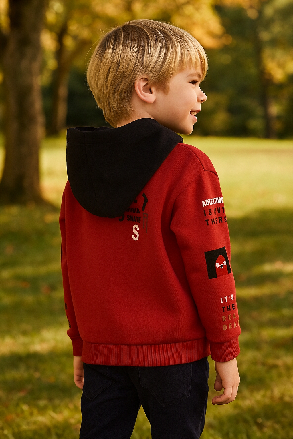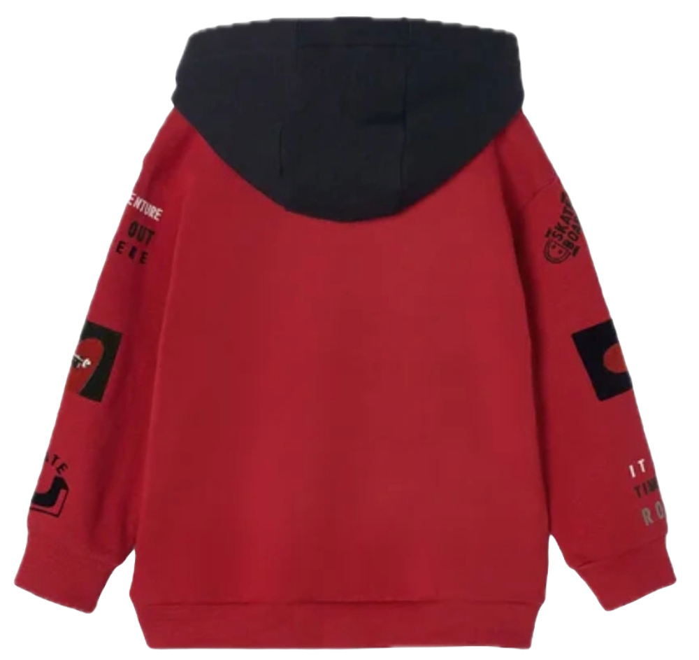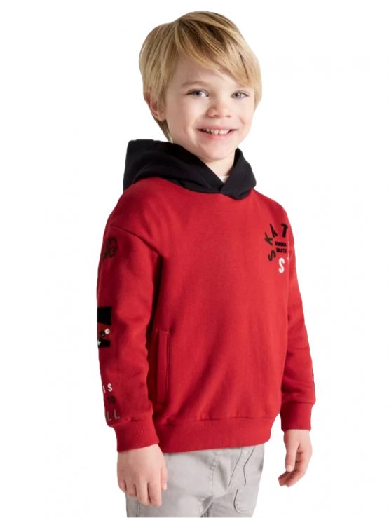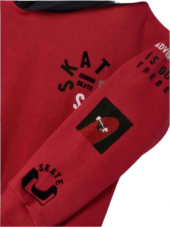 Il colore rosso vivace, abbinato al cappuccio nero, dona uno stile moderno e deciso. Le stampe ispirate allo skate sulle maniche completano il design. Infatti, questa felpa casual bambino è pensata per i più dinamici e rappresenta un capo versatile da indossare ogni giorno.
