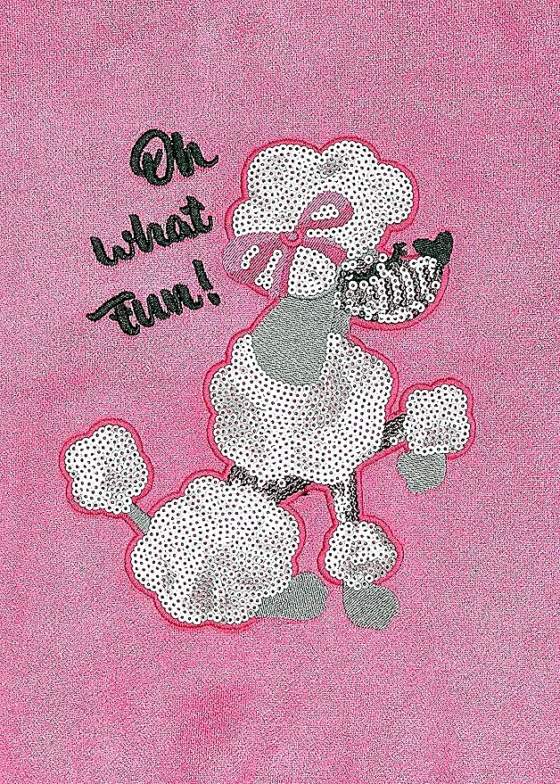 - Design: grafica barboncino con paillettes brillanti; colore rosa facile da abbinare.