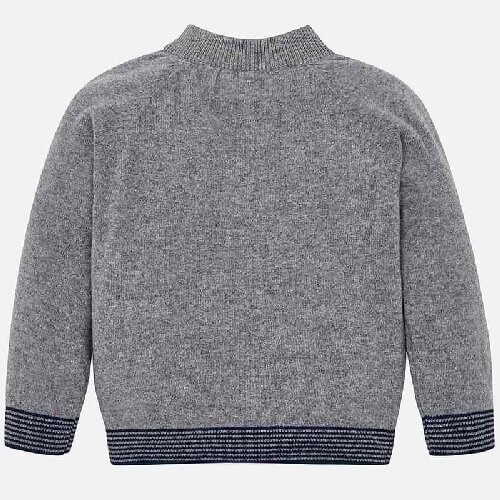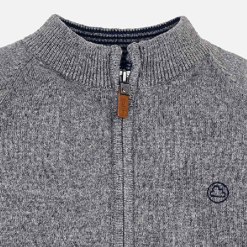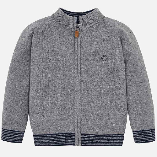 Giacca in maglia manica lunga per bambino. Collo modello lupetto. Modello della nostra collezione dal design classico, ideale da abbinare a qualsiasi completo. Chiusura centrale con cerniera. Tessuto di lana. Elementi decorativi: ricamo.