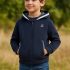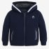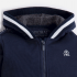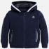 Giacchino bambino Mayoral blu navy con cappuccio, zip frontale e tasche laterali.