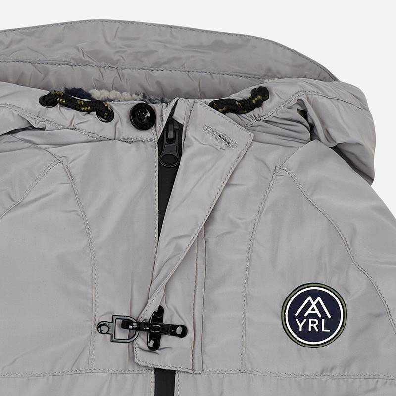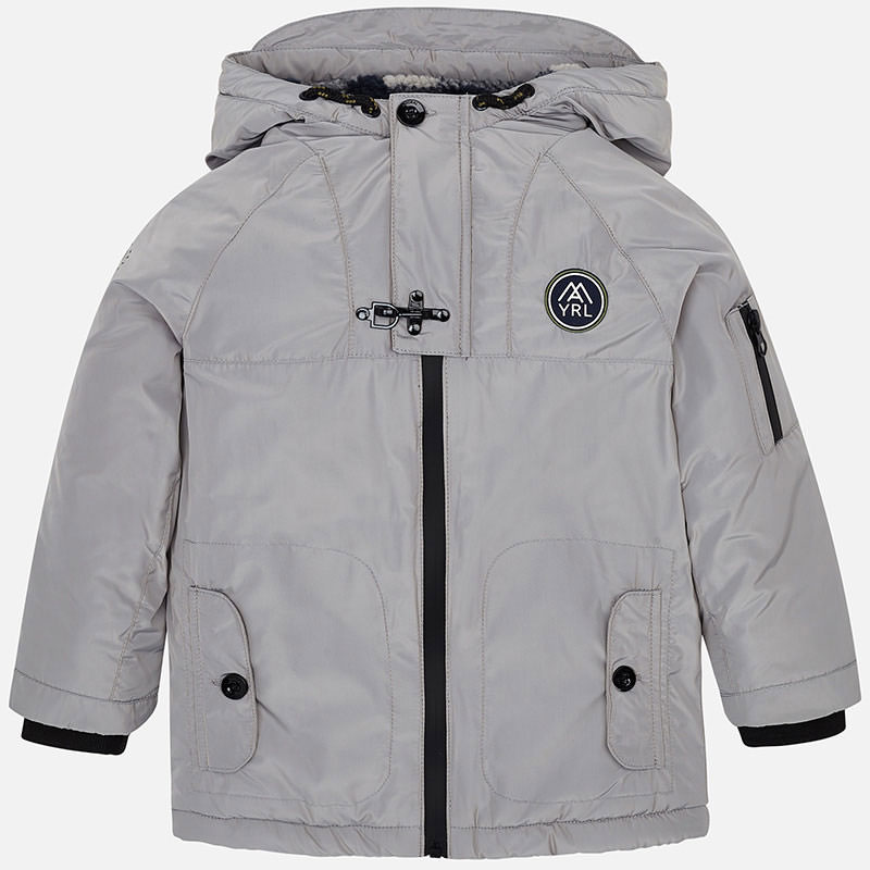 Giaccone manica lunga per bambino con polsini con bottoni. Girocollo. Cappuccio con visiera. Chiusura centrale con cerniera. Design imbottito. Interno in pile. Tasche funzionali nella parte anteriore.