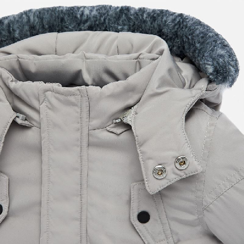 Giaccone manica lunga per bambino. Collo modello lupetto. Cappuccio rimovibile con pellicciotto rimovibile. Chiusura con cerniera e bottoni. Design imbottito.Tasche funzionali nella parte anteriore.