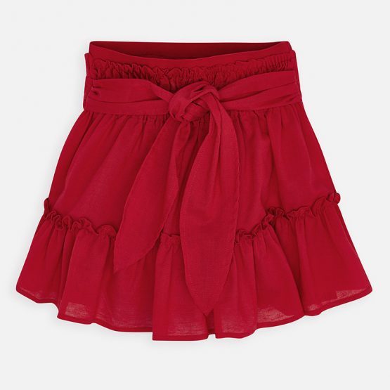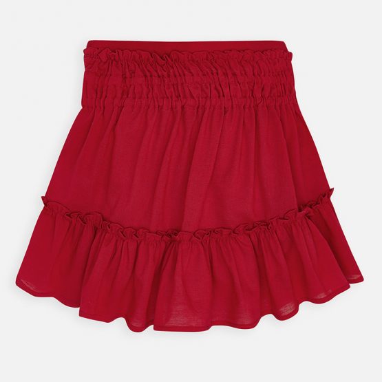 La gonna bimba rossa lino cotone COD 3904E è pensata per le giornate di primavera ed estate: leggera, fresca e comodissima grazie alla fascia in vita elastica. La cintura a fiocco rimovibile e le balze arricciate aggiungono un tocco romantico, perfetto per la scuola, le feste e le foto di famiglia.