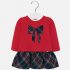Deliziosa salopette gonna per bambina. Chiusura con bottoni a pressione sulla schiena per agevolare la vestibilità del capo. Elastico regolabile in vita che garantisce un miglior taglio del capo. Mix di tessuti abbinati per ottenere un design unico e originale. Modello con riccio. Tasca funzionale nella parte anteriore. Elementi decorativi: applicazioni decorative. Capo smontabile con bottoni.
