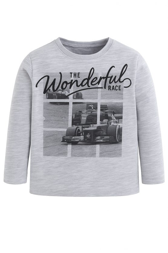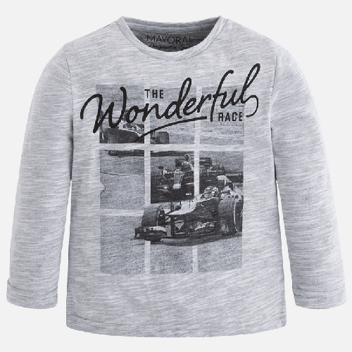 Maglietta Bambino Mayoral Manica Lunga Grigia con Stampa Auto da Corsa – The Wonderful Race