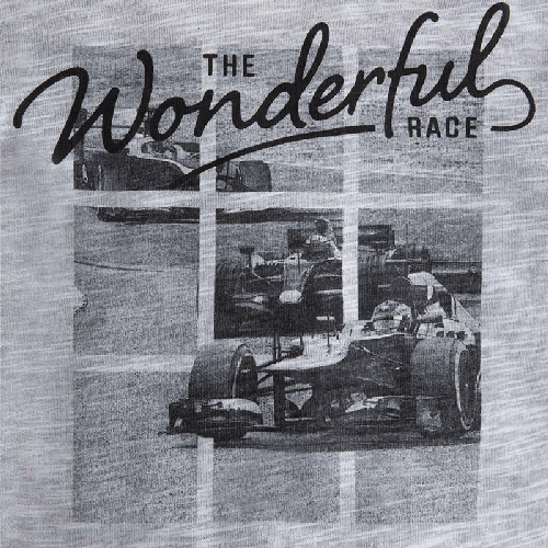 Il design si distingue per la stampa frontale ispirata al mondo delle corse automobilistiche, con la scritta “The Wonderful Race” che dona carattere al capo. La base grigia mélange rende la maglietta versatile e facilmente abbinabile a jeans, pantaloni sportivi o joggers, creando outfit casual adatti alla scuola, al tempo libero o alle uscite con amici e famiglia.