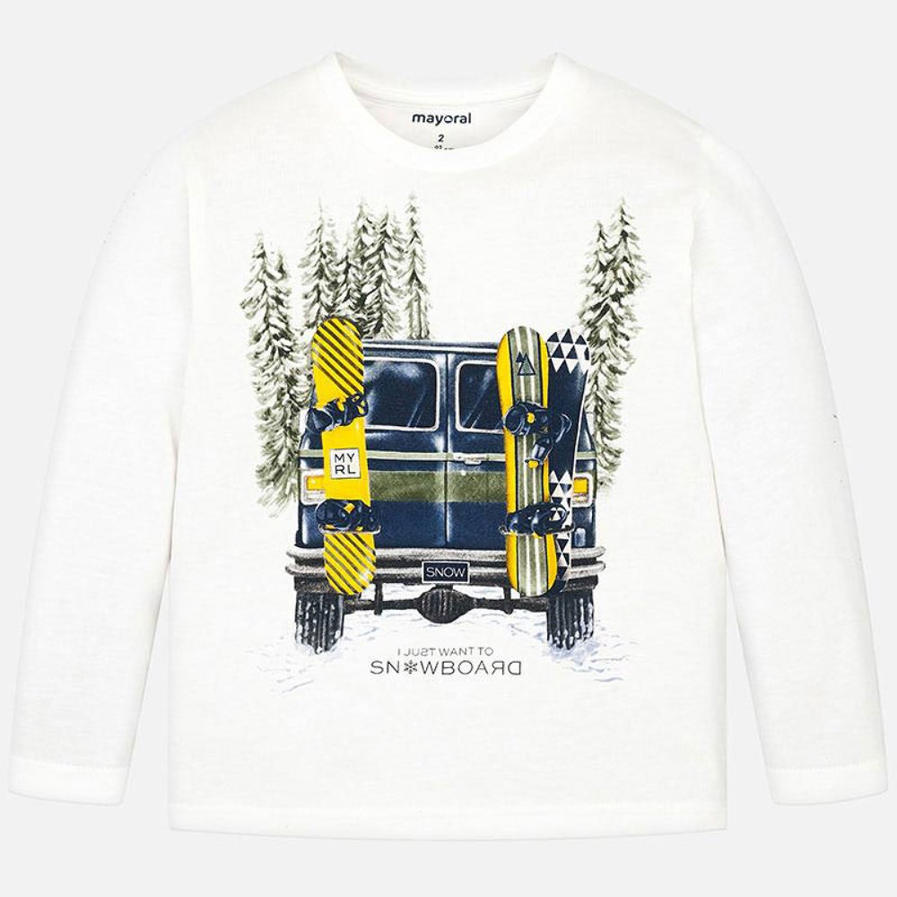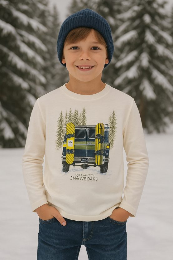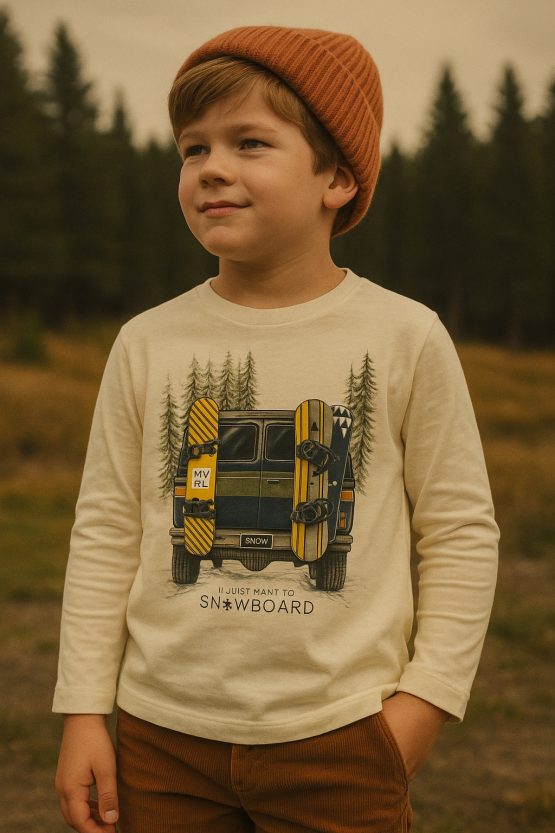 La stampa con il fuoristrada e gli snowboard sul retro cattura subito l’attenzione. Grazie a questo dettaglio, la maglietta manica lunga bambino 3-9 anni diventa non solo un capo pratico, ma anche un modo per esprimere lo stile dinamico e sportivo dei bambini. Inoltre, i colori vivaci rendono la t-shirt perfetta per le stagioni più fredde, perché portano energia e personalità agli outfit. Infatti, il design Mayoral è pensato proprio per unire estetica e funzionalità.