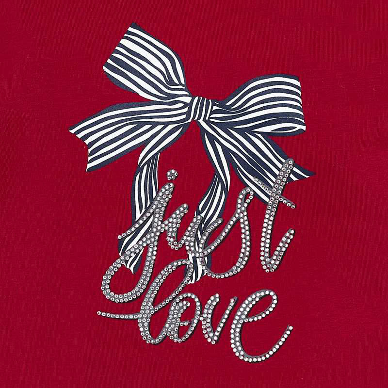 Maglietta manica lunga per bambina. Girocollo. Morbido tessuto di cotone elasticizzato. Elementi decorativi: disegno nella parte anteriore, strass. Per motivi di sicurezza, le taglie piccole (2-3 anni) possono subire alcune variazione negli elementi decorativi utilizzati.