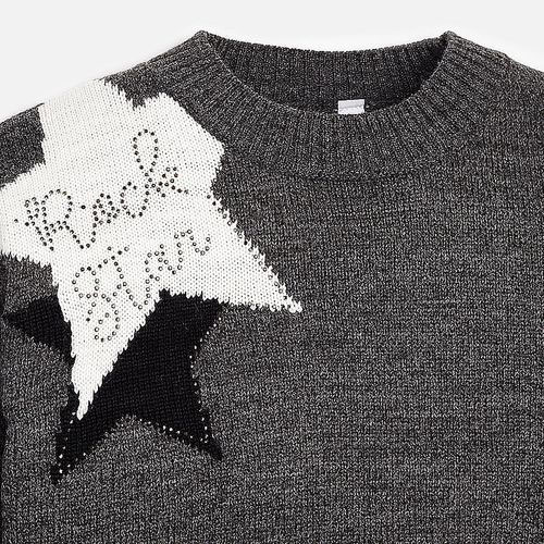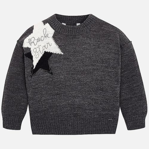 Maglioncino bambina. Girocollo. Tessuto caldo e morbido. Elementi decorativi: disegno nella parte anteriore e borchette.