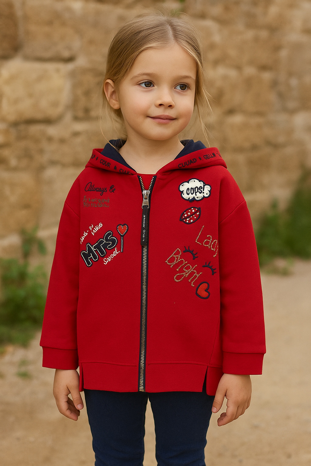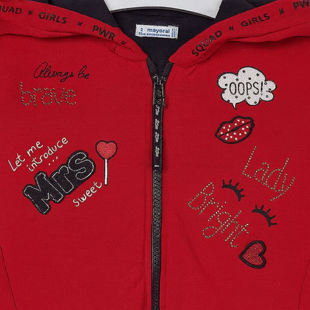 La felpa bambina rossa con zip Mayoral è pensata per accompagnare ogni giornata con stile e praticità.