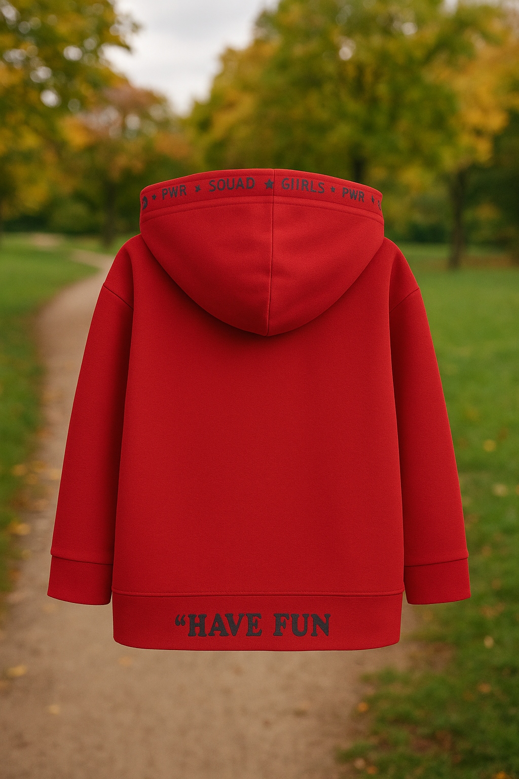 per le bambine che vogliono distinguersi con un look moderno ma confortevole. Sul retro, infine, la scritta “Have Fun” aggiunge un tocco positivo.