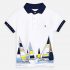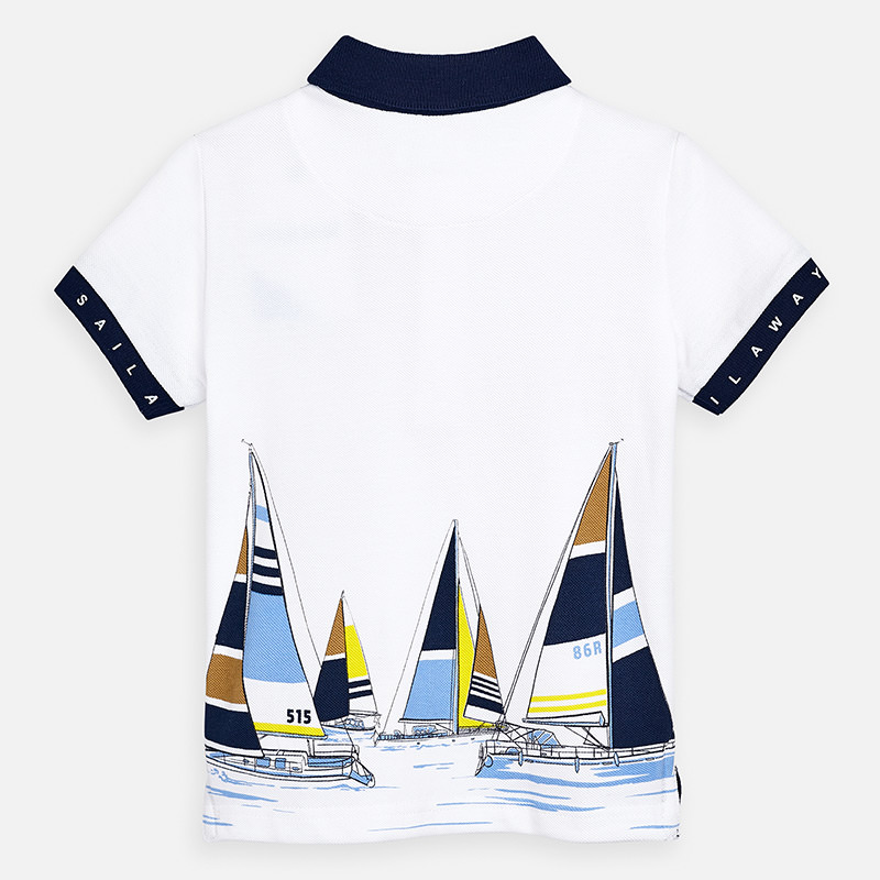 Polo manica corta con dettagli a contrasto per bambino. Colletto polo classico. Tessuto 100% cotone. Elementi decorativi: disegno nella parte anteriore.